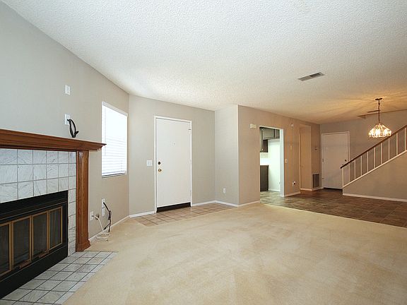 WELL MAINTAINED UNIT IN THE STONEGATE GATED COMMUNITY. This unit is located toward the north end of the complex and offers a cozy front patio with brick laid decking. Entry way with tiled floors opens to the family room which offers a tiled fireplace with oak mantle, windows with blinds and an adjacent eating area. The eating area has newer flooring, a light fixture and is open to the kitchen. The kitchen features newer flooring, painted cabinets, white appliances, tiled counter tops and brushed nickel fixtures. There is a downstairs guest bath which also has newer floors, painted cabinets and chrome fixtures. Upstairs the master bedroom offers carpeting, a walk-in closet, and a spacious master bathroom. The master bathroom offers dual sinks, newer floors and a shower/tub. There are two other guest bedrooms with newer carpet and window coverings. The upstairs guest bath has newer floors, painted cabinets and a shower/tub. There is an attached two car garage with direct access. The grounds offer greenbelts, grass area, mature trees and a pool area.