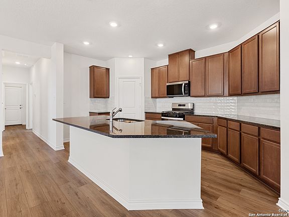 Durable vinyl plank flooringUpgraded cabinetsDaltile tile backsplashWhirlpool stainless steel appliancesAutomatic sprinkler systemFully sodded yardExtended breakfast bar