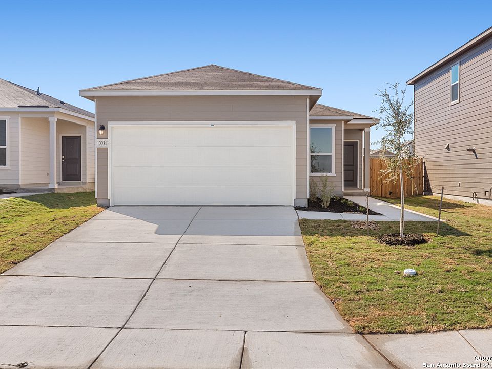 This beautifully crafted home offers 9-ft. first floor ceilings and stylish design throughout. The kitchen features Whirlpool stainless steel appliances, Woodmont Cody 42-in. upper cabinets, a Daltile tile backsplash, extended breakfast bar, and stunning Uba Tuba granite countertops. The primary bath is a relaxing retreat with upgraded cabinets and a 42-in. garden tub/shower surrounded by elegant Daltile tile. Decorative touches include a Carrara-style entry door, Kwikset Polo interior door hardware, and durable vinyl plank flooring in the bathrooms, kitchen, and great room. Enjoy a wireless security system, fully sodded yard, and automatic sprinkler system.