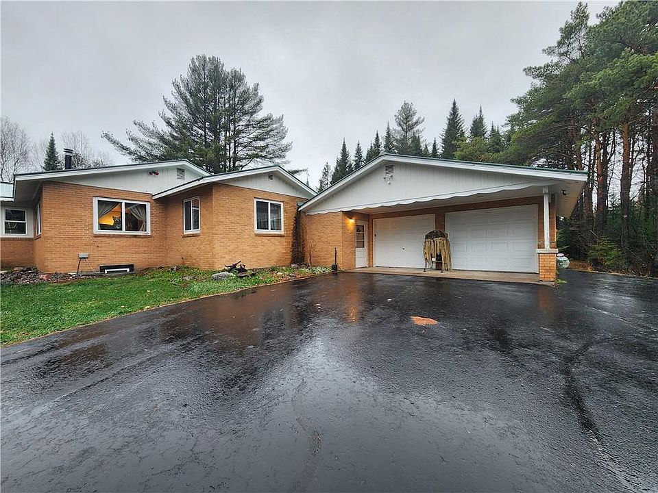 Northwoods Retreat! Property is turnkey located on Moss Creek which flows into the Chippewa Flowage, with over 500 feet of meandering frontage on 2.17 acres. This home is in excellent condition with 3 bedrooms, 2 full baths, family room plus LL living room, 4 season sunroom, spacious kitchen w/New appliances and dining area, brick exterior, metal roof, attached garage, and asphalt driveway-recently seal coated. Includes dock and Shore Station lift with electric at dock. Fishing boats can access the flowage by going thru the water culvert under Hwy B. Boat landings are nearby on CC as well. This location is very convenient to town and many area amenities including restaurants, golf courses, and the Chequamegon National Forest.