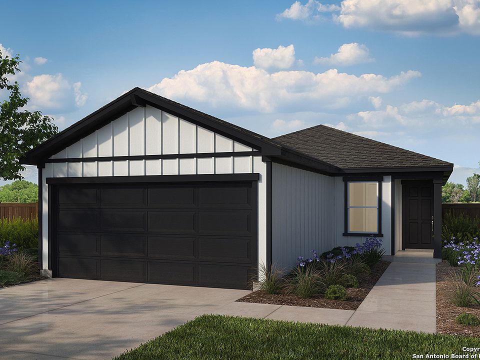 Discover comfort and style in this beautifully appointed home featuring 9-ft. first floor ceilings and thoughtful design touches throughout. The kitchen boasts Whirlpool stainless steel appliances, Woodmont Dakota Shaker panel 42-in. upper cabinets, a Daltile tile backsplash, and sleek Arctic Pearl granite countertops. Unwind in the spacious primary bath with upgraded cabinets and a 42-in. garden tub/shower accented by Daltile tile surround. Decorative elements include a Carrara-style entry door, Kwikset Polo interior door hardware, and vinyl plank flooring in the bathrooms, kitchen, and living room. A wireless security system, fully sodded yard, and automatic sprinkler system add everyday convenience.