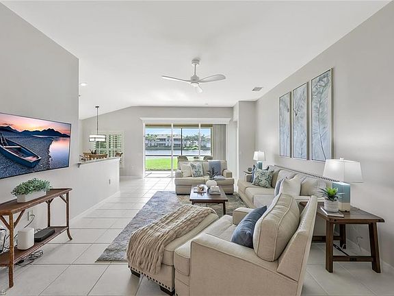 INCLUDED IN YOUR RESIDENCY Golf, Pickleball, Tennis, Resort Style Pool, Fitness, Walking Path, Remodeled Golf Course 2025 and Remodeled Clubhouse with Bar and Restaurant. ALL ASSESSMENTS PAID! This move in ready home has a stunning Southeast Lake view and a 2 car garage, plantation shutters, stainless steel kitchen appliances, stone kitchen counterops and glass tile backsplash, large tile in the main areas and an open floorplan. Recent updates and improvements include whole interior of home freshly painted, all new light fixtures and fans, brand new carpet in the bedrooms! HVAC is 2024. Impact windows 2024. FULL HURRICANE PROTECTION! Water Heater 2018. Roof 2021. Survey available! This property is in the Bundled Golf section of Colonial Country Club affording unfettered access to the 18 hole newly renovated course, pickleball, bocce, tennis, fitness, resort style pool and renovated clubhouse with gorgeous new bar and dining areas! Close to nearby area shopping and dining, Gulf Coast Town Center, Historic Downtown Fort Myers and RSW SWFL International Airport. HOA takes care of lawn and landscaping. Don't miss this one!