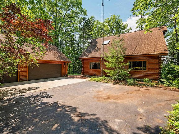 Lakeside Living Meets Handcrafted Beauty Tucked away on 1.18 wooded acres, this one-of-a-kind log home offers 223 feet of private frontage on the all-sports Cedar Hedge Lake—195 acres of pristine Northern Michigan water, known for its fishing, natural beauty, and peaceful pace. A private dock and walkway make lake access easy, whether you’re casting for bass or launching a kayak. Inside, you'll find masterfully crafted woodwork throughout—no detail spared. From the intricate log railings to the custom kitchen cabinetry and maple wood floors, every space radiates warmth and character. The main living area features vaulted ceilings, expansive windows, custom tile counters, and a striking floor-to-ceiling stone fireplace. Radiant floor heating runs throughout the home, creating a cozy and comfortable environment all winter long, while a whole-house generator offers peace of mind year-round. The home includes 4 bedrooms and 3.5 bathrooms, with private suites on both the main and second floors. The upper-level primary suite is a true retreat with its own balcony and spa-like bath. The finished lower level includes a separate living area, full kitchen, bed and bath—ideal for guests, multigenerational living, or income potential. Outside, a spacious deck and wooded surroundings provide total seclusion. An oversized 3-car garage completes the package. This is more than a home—it’s a lifestyle on the water, just minutes from Interlochen and Traverse City.