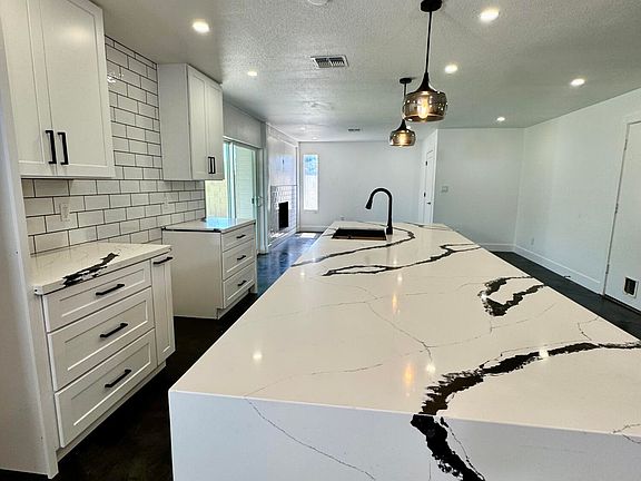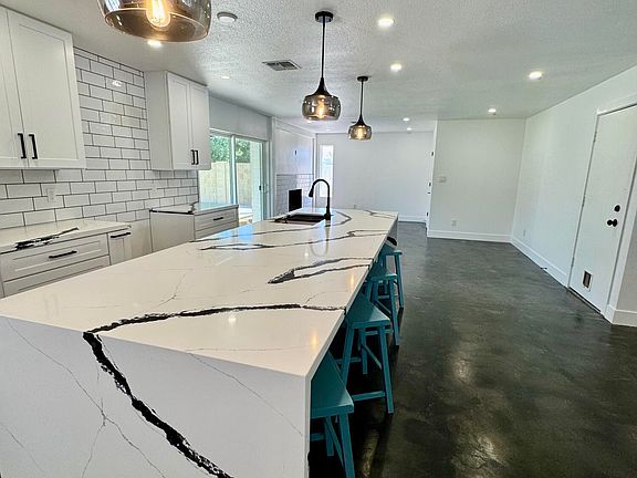 Every inch of this home has been thoughtfully updated. A new roof and windows provide peace of mind, while the open, modern floor plan and newly stained and polished concrete floors create a sleek, contemporary feel. The heart of the home is the brand-new chef's kitchen, designed for both everyday living and entertaining. The kitchen features an oversized island with contemporary quartz countertops and waterfall edgesa luxurious touch you typically see in million-dollar-plus homes. The new soft-close cabinets and updated appliances complete this perfect space.