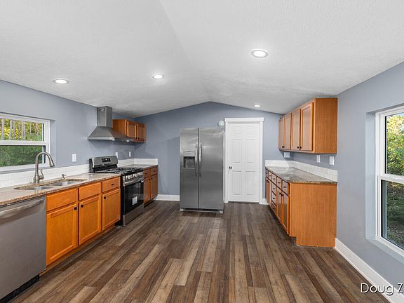 Better than brand new! This home has been upgraded to a very high level for homes of this type! The home sets nicely on one acre, surrounded by tall pines and hardwood. Property also includes 24x24 pole building. Building is well insulated and sheathed with OSB. Homes upgrades completed this year include new roof, vinyl siding and skirting, windows, sliding glass door, luxury vinyl plank flooring, carpet, and all appliances including washer and dryer. Both bathrooms are 100% newly renovated. The home has been sheathed with OSB prior to siding. Entire floor with 3/4'' tongue and groove OSB. New drywall, paint and decks. Furnace and central air are approximately 7 years old. Kitchen with maple cabinets and granite countertops. Don't miss out on this affordable opportunity.