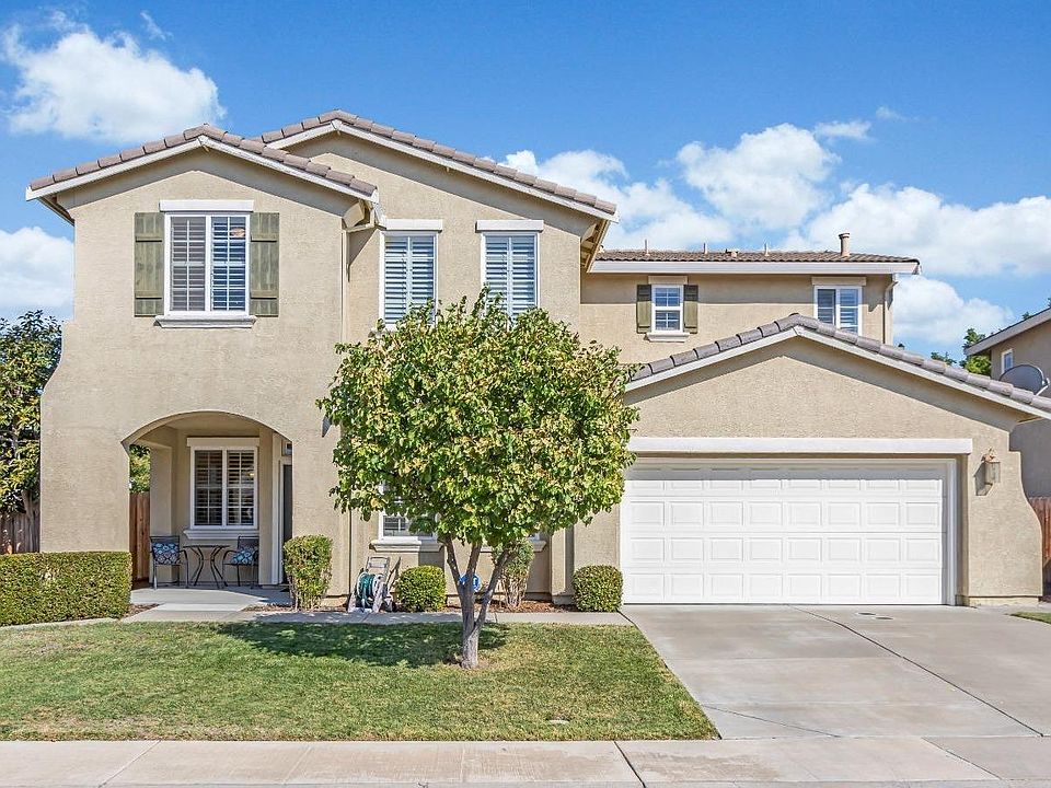Beautiful home located in the desirable neighborhood of Franklin Meadows! Welcome to this popular floor plan boasting 5 bedrooms, 3 baths ( 1 BR & 1 BATH downstairs ) w/ aprx. 2,300 sq ft of living space & 2 car bay garage. The welcoming covered front porch opens to a staircase emphasizing the soaring ceiling with bright & natural light. Features such as formal living room, dining room, breakfast nook, large family room, and custom plantation shutters all throughout. Cook your favorite meal on your spacious kitchen with large island, stainless steel appliances, recess lighting, closet pantry & more. Enjoy your privacy on your spacious backyard with covered patio, large deck, and lots of fruit trees, perfect for entertaining, gardening, or barbecue. Short distance to top-rated Elk Grove schools, nearby parks, library, restaurants, shopping & more. Close to New Costco & freeway access. Come see it today!