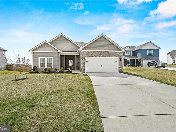 Welcome to your dream home at 10038 Roulette Dr in Hagerstown, MD. This meticulously designed 4-bedroom, 2-bathroom residence, built in 2022, is the perfect blend of rustic charm and modern sophistication. Offering 1,972 sqft of living space and an oversized 2-car garage, this home is ideal for those seeking both luxury and convenience. The heart of this home lies in its expansive open-concept living area, where custom touches like electric fireplace with built-ins, accent walls, and upgraded lighting create an inviting atmosphere. The spacious kitchen, complete with stainless steel appliances, granite countertops, and crown molding, will inspire your inner chef. Throughout the home, 2-inch custom faux wood blinds offer style and privacy. The main-level primary bedroom is your private sanctuary, featuring a spa-like bath with a soaker tub, step-in shower, and walk-in closet. Two additional bedrooms, a full bath, and a separate laundry room complete the first floor, while the fourth bedroom is perfect for guests or a home office. Step outside to the fully fenced backyard with a covered patio, perfect for entertaining or simply relaxing and enjoying the scenic mountain views. The premium lot extends 10 feet beyond the fence, offering ample outdoor space. Gather around the firepit and enjoy the beauty of nature right in your own backyard. This home is located in a private, serene setting but is still close to all the conveniences you need, including major highways, shopping, and dining options. With quick access to I-70 and I-81 to PA and WV, and just 30 minutes from Frederick and I-270 access to Washington, DC, this property offers the perfect balance of seclusion and accessibility.