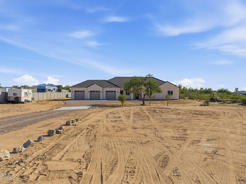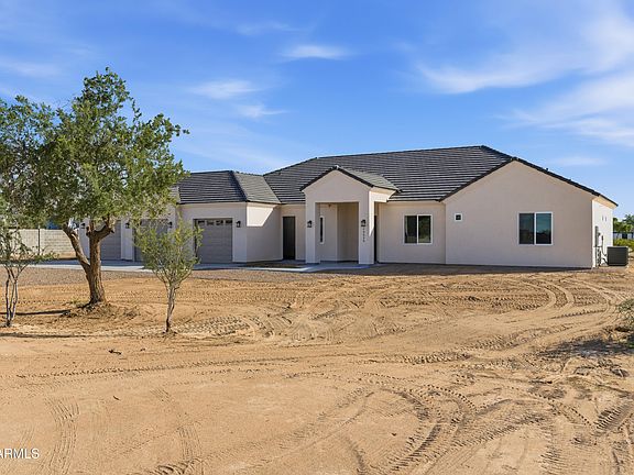 Welcome home to this exceptional, newly built 3051sqft custom home on just over an acre of horse property with no HOA! Spacious and airy, this home boasts 10ft flat ceilings, extra wide hallways, 4 generous bedrooms, 3 bathrooms and an office/den with separate entrance. Gourmet kitchen features quartz counters, island with breakfast bar, 42'' cabinets, tile backsplash, stainless appliances including wall oven, and a walk-in pantry. The large primary bedroom has access to the covered rear patio, an over-sized walk-in closet and en-suite with double sinks, tile shower and stand alone tub. Huge 1045 sqft 3 car garage. Conveniently located with stunning desert/mountain views, this amazing home is just minutes from shopping, restaurants and Casa Grande's most northern I-10 on ramp.