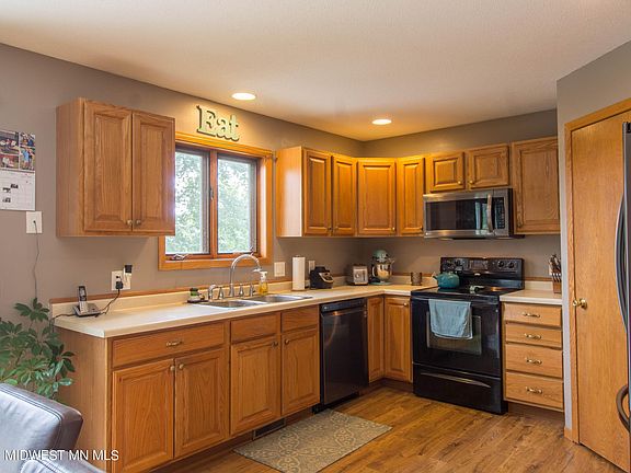 Beautiful 4BR 3BA home in Perham's Westwind. Great layout from the sizable kitchen with new appliances leading through the dining and large living room. The dining opens to nice backyard deck ideal for grilling and entertaining. Smart home features include smart lights, thermostat, security system, garage door and more. Master bedroom with two other bedrooms nearby on the main floor. Curl up by the gas fireplace in the full finished lower level complete with an extra bedroom, bath, and den with many uses available. Includes a shed for extra storage. Mature trees, nice landscaping, and a great neighborhood make this a desirable place. Take a look today!
