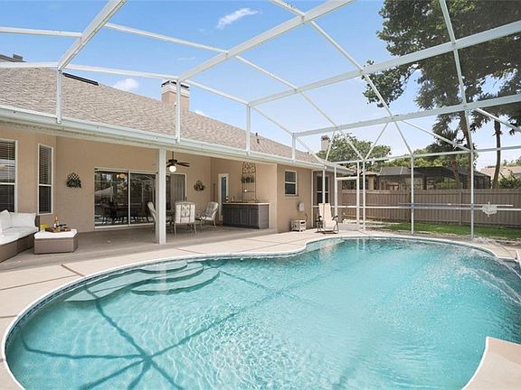 Hidden GEM alert! This sparkling POOL HOME is ready for you to enjoy this summer! Located in the beautiful Hammocks neighborhood with mature oak trees lining the streets, you'll feel right at home as you pull up to this all-one-level 4-bedroom home with a superb open-layout. Step through the double doors to see straight through to the pool and covered lanai through a huge triple-glass sliding door. A high vaulted-ceiling makes the family room feel grand as you entertain indoors or flow to the outside, which is completely screened-in! The bar-top kitchen is in the heart of the home and features granite counters and a walk-in pantry. The private master suite has direct access out to the lanai and boasts a large master bath with separate vanities, soaking tub, and shower stall. Three additional bedrooms line the opposite side of the home with a convenient pool bath for guests. The garage is oversized with cabinet storage for all your projects, and the backyard is fully fenced. Imagine relaxing on the back lanai after a swim while a meal cooks on the summer kitchen jenn-air grille-- this is Florida living! Come see this hidden gem of a home today.