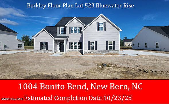 The ''Berkley'' floor plan is nearing completion in Hutton Pointe Phase II of Bluewater Rise. $10,000 Buyers Closing Cost Incentive w/ use of preferred closing attorney & lender! This 5 bedroom, 3.5 bath home, features nearly 3,000 Sqft. of living space. 1st floor master bedroom suite, with soaking tub, separate shower and large walk in closet. Open concept kitchen with granite counter tops is ideal for entertaining family and friends. Impressive 2-Story foyer, formal dining room, & breakfast nook. The covered back porch is the perfect place to grill & chill. Bluewater Rise is conveniently located between MCAS Cherry Point and Downtown New Bern, in the Creekside school district!
