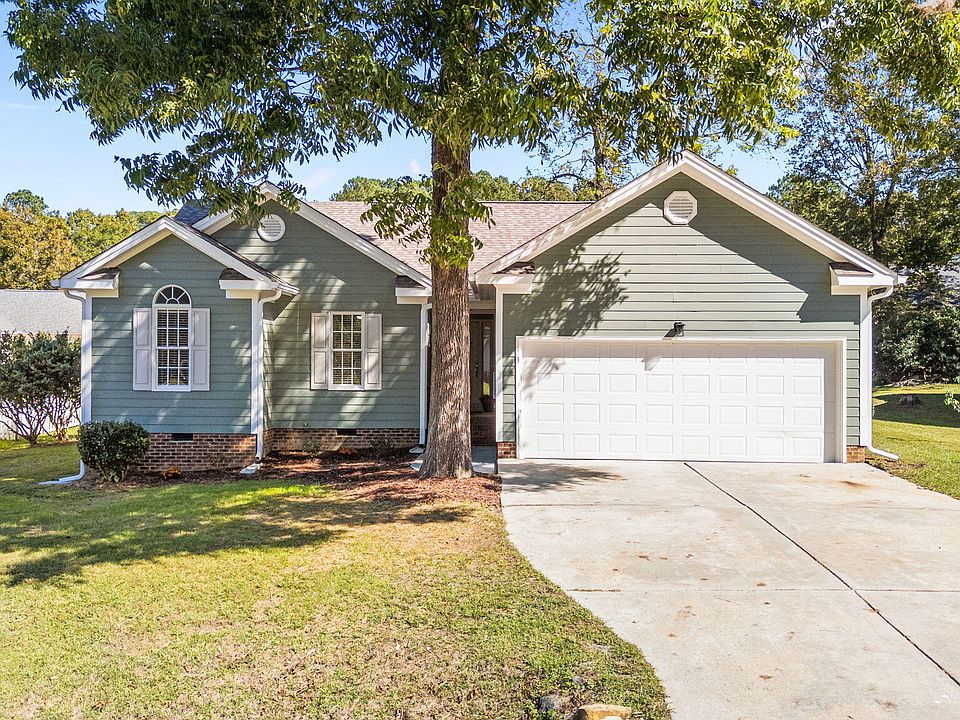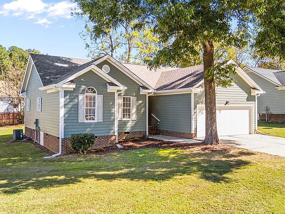 Welcome home to this beautifully updated ranch that is designed for easy, main living that is just minutes from charming downtown Fuquay-Varina! This move-in ready home offers 3 bedrooms, 2 full baths, and a 2-car garage in a bright, open-concept layout. The spacious living room features a cathedral ceiling, creating an inviting atmosphere ideal for everyday living and entertaining. You'll love the modern upgrades featuring a new roof, gutters, blinds, vapor barrier, painted garage, new light and plumbing fixtures, ceiling fans and luxury vinyl flooring. Fresh interior and exterior paint make this home shine inside and out. The updated kitchen features freshly painted cabinets with new hardware, granite countertops, stainless steel sink, and new SS appliances which include the dishwasher, stove, and microwave. A breakfast bar and cozy nook complete the space- perfect for your morning coffee. The primary suite includes a walk-in closet and completely renovated bath showcasing a beautifully tiled walk-in shower, new vanity, lighting and mirror. The guest bath has also been refreshed with a new vanity, tub with custom tile surround, as well as new lighting and mirror. Step outside to a newly installed paver patio and stairs- the ideal space for barbecues and outdoor enjoyment. No HOA!