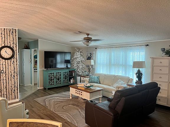 If you are looking for a great home with low maintenance, this home is for you. So many updates and great features! TWO Bedroom, TWO Bath home has open living space, all hard floors, updated countertops, recent master shower replacement, Leaf Filter on the gutters, pest protection through Terminix, tinted double-pane replacement windows and so much more! Glassed Florida room with mini-split (heat/ac) unit AND a screen room to enjoy the weather and wildlife on the perimeter lot. 2022 ROOF and 2015 HVAC professionally maintained. FURNISHED and includes the 2011 Club Car golf cart! Within walking distance of the clubhouse and other amenities.