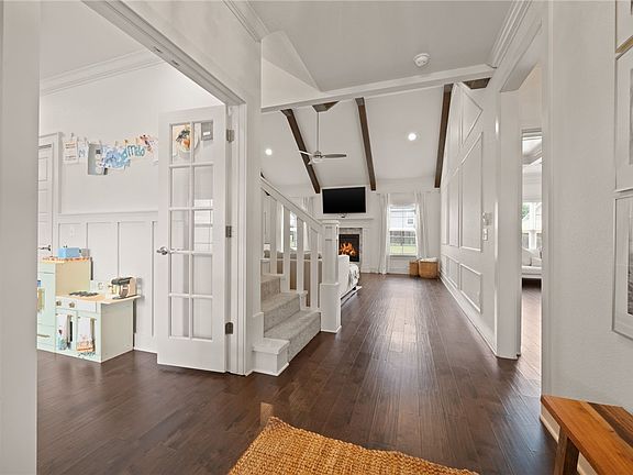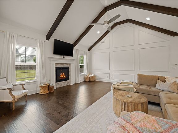 Welcome to this beautiful 4 bed, 3 bath home in the sought-after Hyde Park subdivision of Cave Springs! The main floor features an office/bonus room with French doors and full bath, plus a vaulted living room with wood beams and gas fireplace. The kitchen offers granite counters, stainless appliances, gas range, island, and pantry. A mudroom with built-ins and laundry room with cabinetry add convenience. The primary suite boasts a coffered ceiling, jetted tub, dual vanities, and walk-in closet. Upstairs are 3 bedrooms and a full bath. Relax on the covered back patio overlooking the fenced backyard—perfect for entertaining or play. Enjoy all the neighborhood amenities, including a community pool, park, and walking trails, just steps from your door. Located minutes from top schools and conveniences, this home blends comfort, style, and community living.