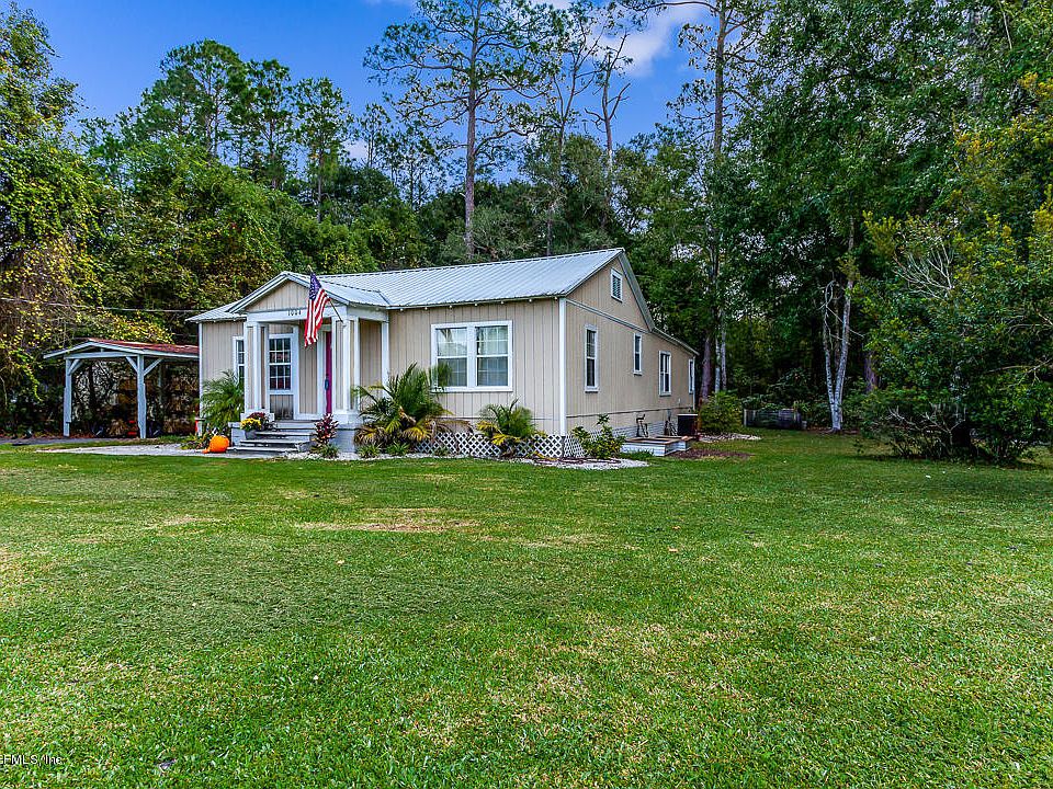 Totally remodeled home from top to bottom & sitting on 2 private city lots! Metal roof, exterior siding, insulated windows, electrical panel, plumbing, carpet, wood flooring, hot water heater, kitchen and bathrooms too! The spacious kitchen has granite countertops with beautiful white cabinets and upgraded lighting as well. Master Bedroom has plenty of space & already has a king-sized bed which conveys too. Master bathroom has real Hardwood floors and new vanity and toilets and shower also. Want more? How about an outdoor kitchen, grill, and deck!?! Enjoy the peace and quiet on the back porch. Deer roam along the back area and no one next door on the extra city lot which is included too. Located right by the elementary school and Shands hospital- snap this one up quickly!