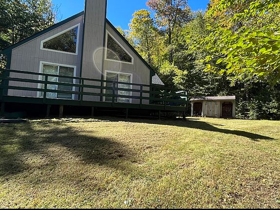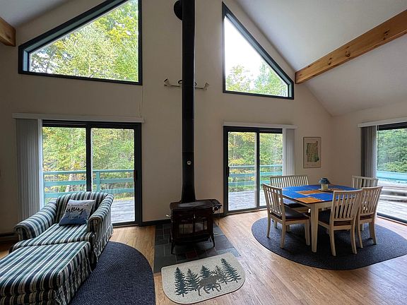 Amazing location in a no zoning town, close to Stratton Mountain Resort. Large open concept kitchen, living, dining. Light and bright with cathedral ceilings, large windows, hardwood floors, woodburning stove in the main living area. Covered entry, full finished basement, home sits back off a quiet dirt road. Located in desirable neighborhood, this home is currently being utilized by current owner as a 5 bedroom home, however the two bedrooms in basement do not have legal and proper egress windows. Great rental potential, only a short drive to 4 southern Vermont ski resorts. The hot tub is not in working order. Property being sold fully furnished, as is condition, bring your bags and start using the house immediately, does need some work. Seller replaced crushed septic line from hill down to distribution box in front of house, approximately 20feet of new pipe completed on Nov 14th 2022.