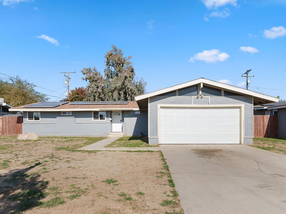 This updated 3 Bedroom and 2 Bathroom home sits on a large, 9000 sq ft lot, with room for potential expansion. An open floor plan with vaulted ceilings gives the updated kitchen and dining area an expansive feeling with double glass doors leading into the large backyard. The counters have been upgraded to granite and appliances are updated as well. A beautiful fireplace creates a warm environment in the living room with easy access to the covered patio in the backyard thru another set of double glass doors. In addition, both bathrooms feature newer vanities, fixtures, shower upgrades, and toilets. Perfect as a starter home or rental. Solar is leased - Whole house water system included.