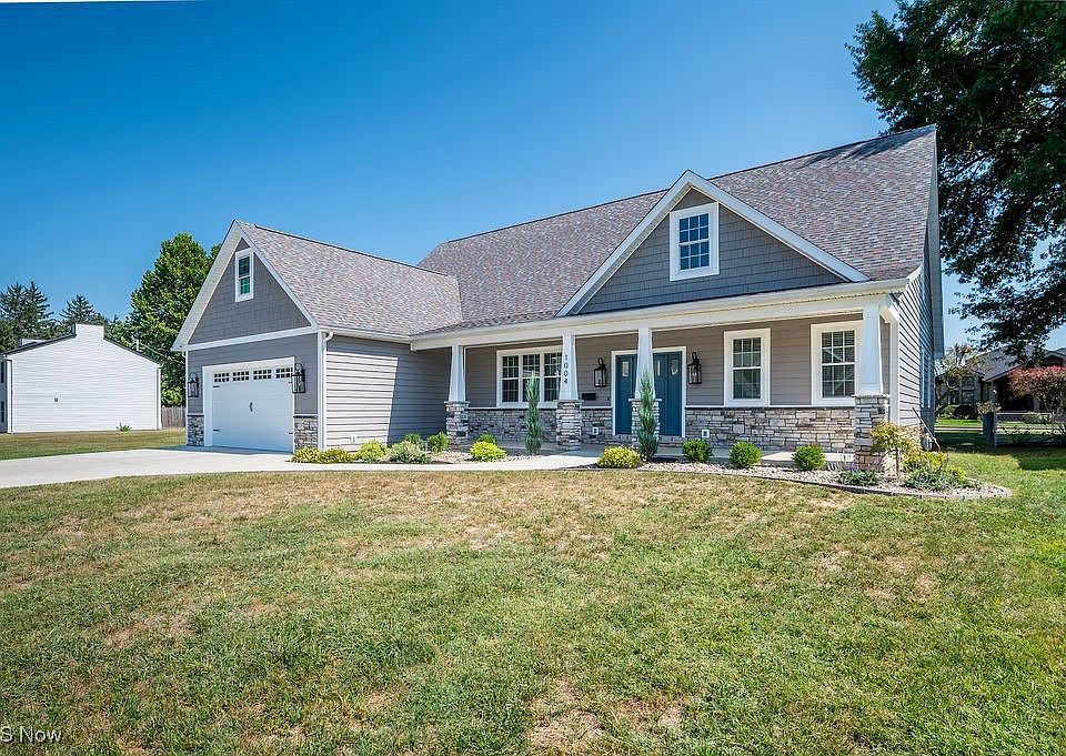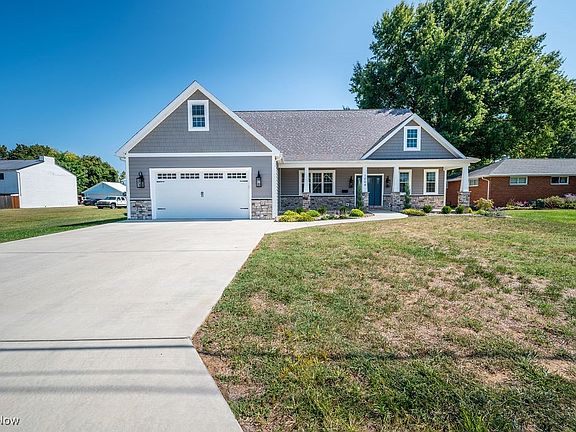 Nearly new home in Belpre! This beautiful Craftsman style home is less than 2 years old and ready for new owners! This expansive home has 4 bedrooms (5 if adding bonus space!) and 3.5 bathrooms! From the moment you walk in, you'll appreciate the roominess and amount of natural light. 9' ceilings enhance the main level, which has an open concept layout to the living areas. A room just off the entry can be used as a bedroom or office space. The great room is anchored by a gas fireplace, and has a den just off the side. The gorgeous custom kitchen with massive island is sure to be a gathering place for family and friends, and features soft close cabinetry and high end stainless appliances. A dedicated dining space ensures plenty of seating for meals, with access to the rear porch. The primary suite is located on the main floor- a convenient retreat for the owner, which features two walk-in closets, and a spa-like bath. The main level also has a laundry room and half bath, on either side of the entry from the two-car garage. Upstairs there are two more bedrooms (one with it's own en suite) and another full bath. A large room is great for a family room or rec room, and a bonus room over the garage is great for storage or could easily be used as a 5th bedroom! High end laminate flooring, and quality insulated vinyl siding. Dual HVAC units ensure comfort and efficiency, and the age of the home and builder reputation instill confidence in your investment. Don't miss out on this beautiful bespoke home in Belpre!
