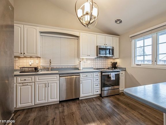 Picture perfect & move-in ready home in popular Dist 28! Beautiful hardwood floors, large picture windows & gorgeous volume ceilings make for a stunning impression in both the living room and dining room. Updated white eat-in kitchen features all updated stainless steel appliances and a convenient breakfast bar for stool seating. The bright & spacious bedrooms all feature hardwood floors and each have terrific closet/storage space. Sunny & delightfully oversized family room provides plenty of entertaining/living space. Large laundry room features full sized Whirlpool W/D and tons of storage space. Enormous backyard is fully fenced with a terrific concrete patio, garden bed, fire-pit area & free standing storage shed. Convenient attached garage with even more storage space, quiet neighborhood with award winning schools and amazing location close to shopping, downtown, recreation and super easy access for commuting. Don't miss this gem!