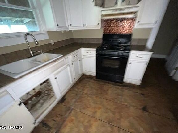 BAYOU FRONTAGE!!! This oversized 3-bedroom, 2-bath home offers spacious living with a serene bayou backdrop. Inside, you'll find a layout with wide hallways and big rooms that create an open, airy feel throughout. The spacious kitchen features classic white cabinetry and tiled flooring. With its large living area and serene bayou views, this home is ideal for those who value both space and tranquility.