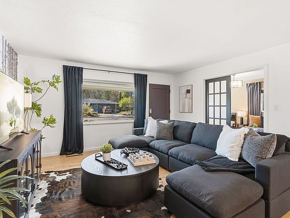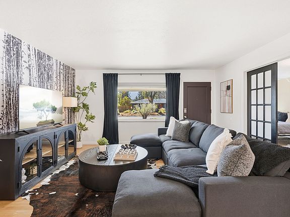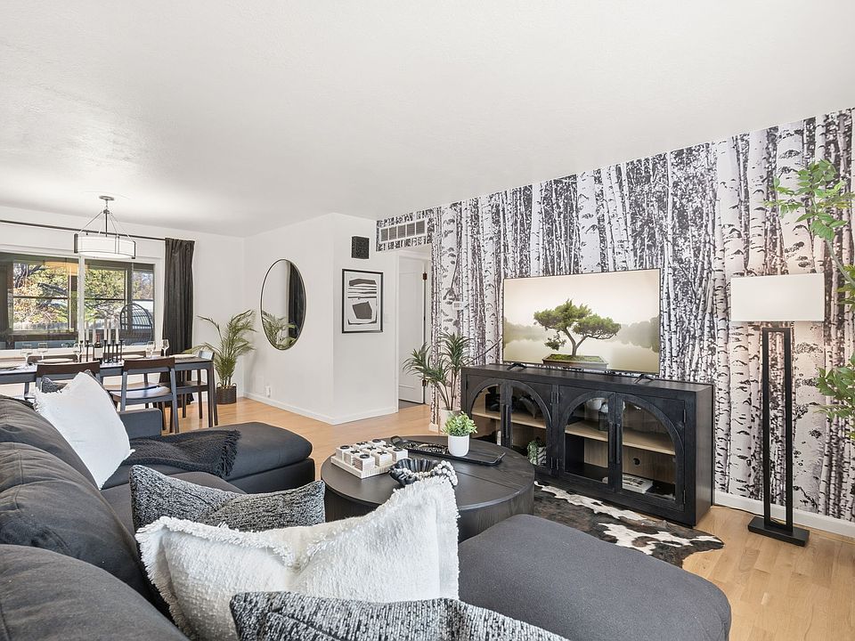 This fully-furnished home features moody black decor, a striking aspen tree accent wall, and chic touches like cowhide and zebra-print rugs. The enclosed sun room creates the perfect setting for game night or casual meals, while cozy reading nooks invite you to slow down and unwind. Outdoors, you'll find a spacious backyard with lounge furniture, corn hole, and bicycles. Pet friendly, too!