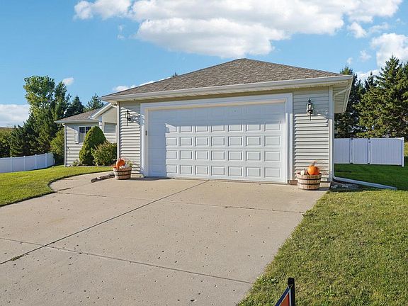 This beautifully maintained, move in ready ranch in Johnson Creek is located in a Cul-De-Sac on the eastern edge of town. This home features; vaulted ceilings, an open floor plan, split level bedrooms, and a large lower level with roughed in plumbing. It has a Primary Suite that features a walk in closet and a tub with a walk in shower. The private back yard features a beautiful stone retaining wall, stamped patio and wonderful white fence. Newer updates include flooring, water heater, roof, garage door, privacy fence, retaining wall, and landscape curbing. Call for more information.