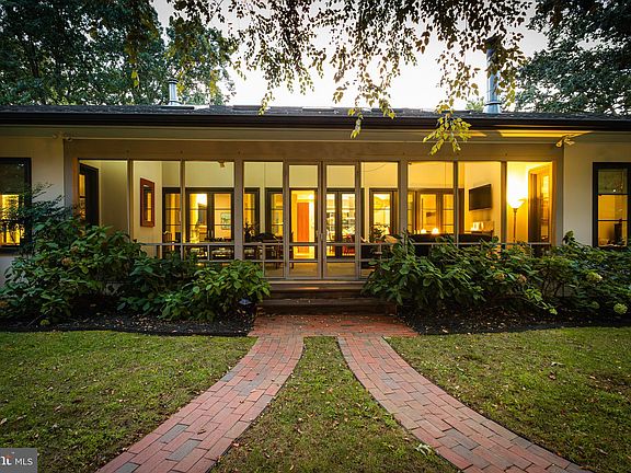 There is nothing else in Eastport like this beautiful, one floor living, attached garage, home with 4 bedrooms, 3 baths, large finished lower level and separate guest house with a 5th bedroom, 4th full bath. Built in 2014 on two lots with 10 foot ceilings, 8 foot doors (18 inches taller than the standard door), in a Montecito west coast style with incredible proportions and finishes, this home's design makes a strong statement in addition to its unique combination of features for Eastport. The main living area is a great room with huge window in the front facing kitchen and 34 feet of glass doors opening to a 34-foot-long screen porch with vaulted ceiling, five skylights and a gas fireplace. The bedroom layout is for the sophisticated owner. There is a separate two bedroom guest suite with its own foyer off the entry hall, linens storage and full bath to the design standard of primary bath with walk-in shower, finishes and lighting. The large primary bath has an outer room with free standing tub and double sinks. This room has two tall thin windows framing the tub mosaic wall and two skylights. The second room of the primary bathroom has an oversized walk-in shower with rain shower and wall showerheads in addition to a third skylight. Both the tub and the shower walls have beautiful mosaic tile floor to ceiling back walls dramatically lit from above by recessed lights. The large walk-in closet is what you would expect in a home designed to this standard and there is a second closet in the primary suite. There is another bedroom or office on the opposite side of the great room, and like the primary bedroom, looks out on the large landscaped backyard mosaic tile wall. The windows are proportionally large for the 10-foot ceilings. The design of the kitchen reflects the space that a single floor, double lot home provides. Ample storage below counters in drawers with hidden utensil drawers and expansive counterspace in the kitchen, provide a clean, contemporary feel. The Melie separate refrigerator and freezer are completely hidden behind the cabinet doors completing the sophisticated contemporary design. A large square island with two ovens, seating for 6, and surface area is the center of this entertaining kitchen. The front hall leads to the living area that is centered on a long, glass sealed fireplace that is both practical and striking. The two-car garage is part of the home, directly entering on a side hallway. It is large enough for two of the largest SUVs and has a finished storage loft above. There is also a finished lower level with a gym, surround sound entertainment system, pool table, separate large workshop, and a 14x14 storage room, all with 9 foot ceilings. THE HVAC as well as hot water are all geothermal, cost effective with no noisy outside systems. The separate guest house has a cathedral ceiling and full bath. The HVAC is the guest house is a high efficiency Mitsubishi split system. The front landscaping includes stone wall and gardens as well as a pergola swing and small patio with Adirondak chairs for when you want outdoors to be social. Illuminated brick sidewalk and mahogany stairs lead to the large entry doors. Privacy is in the large backyard where landscaping accentuates the beauty and utility of an impressive entertaining space. Brick sidewalks and a large stone patio under the shade of 4 red bud trees with outdoor kitchen and firepit. Landscape lighting and irrigation complete and match the look.