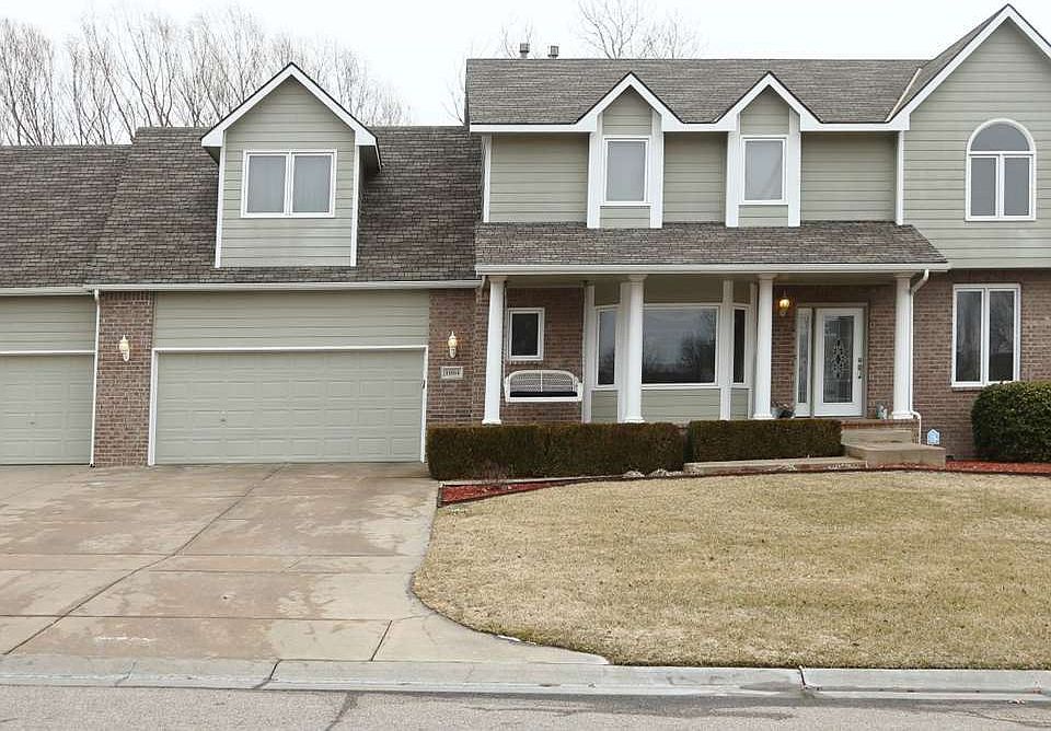 ***BRAND NEW CARPETING THROUGHOUT*** 4BR/3.5BA, OPEN FLOOR PLAN, TURN-KEY READY HOME PRICED TO SELL!!!! Beautiful inside and out, this updated 2 story home boasts luxury, space, and functionality. With a 1/3 acre, fenced corner lot in the highly sought after Goddard school district, you will be welcomed home from the moment you walk in the door. Notice the many extras, including the columned covered porch, beveled glass front door, decorative ceilings, spacious floor plan, and custom paint. Unique in style and flavor, the kitchen offers plenty of space for the most discerning buyer, complete with dual ovens, granite counters, pantry and decorative backsplash. Enjoy meals inside in either the formal dining room or eat-in kitchen, or outside on either the upper deck or the lower patio. There are 4 large bedrooms upstairs, including an oversized master suite with trace bedroom ceiling and vaulted bathroom ceiling. Unwind after a long day in the jetted master tub. The partially finished basement is ready for your personal touches. Don't miss a chance to see this before it is gone! All these features, plus 2 newer Trane A/C units for zones upstairs and down, no specials, and low HOA dues should put this home at the top of your list!