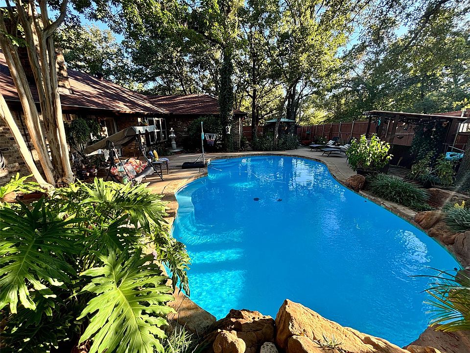 The tankless water heater, roof, and windows are all less than five years old, while the pool pump is under four years old. The home offers a split bedroom layout, with a spacious principal suite, an open-concept living room, and a charming brick fireplace. The principal bathroom boasts a white marble countertop. Outside, the backyard is enclosed by an 8-foot wood composite fence with a transferable warranty. Situated on a corner lot, the property includes a side-entry garage and a convenient storage building. Don't miss the chance to experience this beautiful home for yourself!