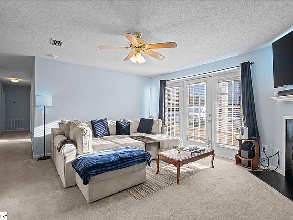 Welcome to easy, low-maintenance living in this ground-level 2 bedroom, 2 bath condo located in a desirable gated community—just minutes from shopping, grocery stores, restaurants, and less than 10 minutes to GSP Airport. Step inside to a spacious living area featuring a cozy wood-burning fireplace. The wall of floor to ceiling windows flood the room with natural light and surround the door leading out to the covered front patio area. The kitchen overlooks the living area and opens to the dining area which includes a convenient closet-style pantry, and a pass-through that allows you to stay connected to the living room. Down the hallway are two generous bedrooms along with a full hall bath. A walk-in laundry room is conveniently located just outside the primary suite. The primary bedroom offers a private full bath with a tub/shower and a walk-in closet. Additional perks include multiple storage closets inside the home as well as an exterior storage closet on the front patio. This condo offers comfortable living with thoughtful features and convenient access to everyday essentials.
