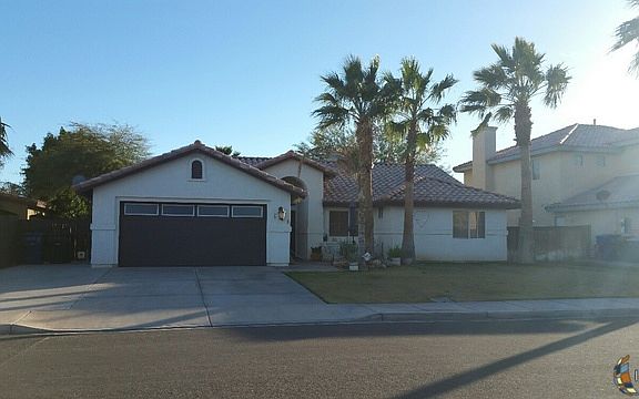 1004 Posada Ct, Calexico, Ca 92231 Great home, located in Beautiful Victoria Villas Tract. Original owner, of this 2 bedroom/1 Den-Bedroom and 2 full bathrooms that had pride of ownership. This model has a spanish flair with built in cubbies and arches, fire place and great open concept entry, living room/dining room/ kitchen island site view to kitchen and rear yard. Home has lots of curb appeal, upgraded tasteful spanish ceramic tile flooring and blue colbolt tile kitchen counters with accented tile back splash. Home has lots of windows looking onto the private rear yard that already has concrete slab, and anchors ready for patio cover of your choosing. Home has two car garage with direct entry. Interior laundry room area. Enlarged concrete driveway for extra parking for your toy, boat or RV. A great home in a great location. Home will be sold "AS-IS", sellers will make no repairs. Sellers make no warranties except as to title.