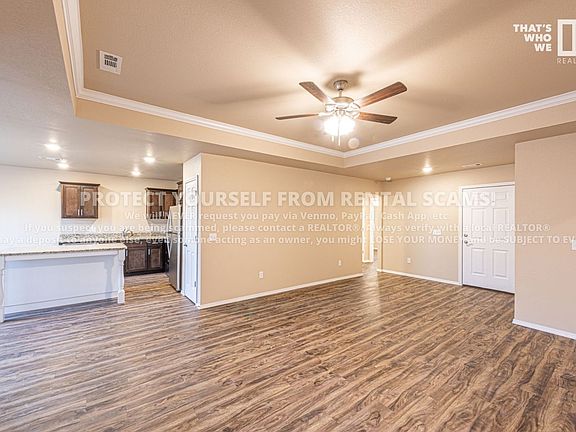COMING SOON! Available approx. 11/12/25! Check out this stunning 3 bedroom 2 bathroom home located just minutes from eateries and shopping! Head into the spacious living room with luxury vinyl plank flooring, tray ceiling, and ceiling fan. Flow into the open concept kitchen and dining featuring granite countertops, an eat in island, stainless steel appliances, and a pantry! Don't miss the primary bedroom with a private ensuite feat: double sink vanity and whirlpool bath tub! Relax and enjoy some outdoor privacy in the fenced in backyard with a covered back patio! *Available date may change. Property is tenant occupied - do not disturb the tenant. **Tenant is responsible for all utilities and lawn care/maintenance.