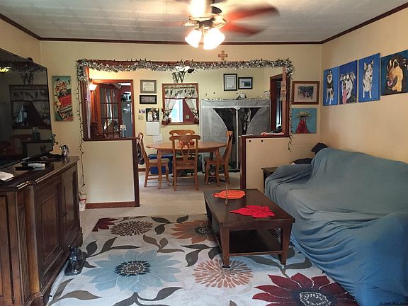 Charming home with plenty of room to roam. Sits on over a one acre lot. Eat in kitchen with hardwood will fit a bistro/high table. New sliding glass door leads to new deck overlooking a private back year. Fence and all appliances: range, refrigerator, dishwasher and washer and dryer all new within the past three years. Garage is heated. Septic cleaned July 2020. Roof approx. 11 years old. Entire yard has invisible fencing. Low taxes are w/ STAR.