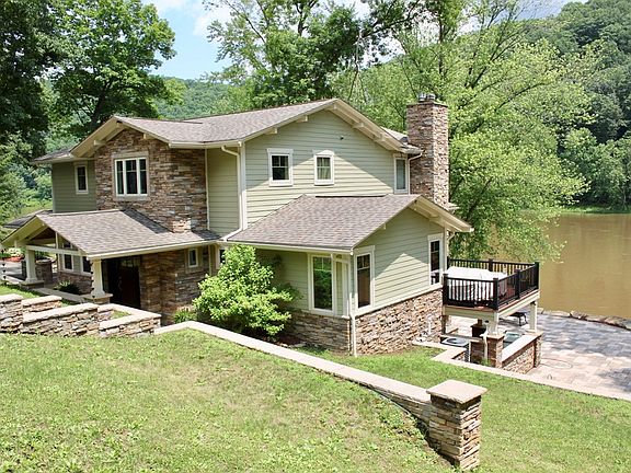 1004 River Drive, Franklin, Venango County on the Upper Allegheny River - This is a rare offering featuring a specular residence, gated road access, 13.28 acres, 30' x 52' garage, 105' inlaid stone patio at River edge, significant river frontage, all premium finish, infrastructure, appliances, and building materials. The home has an open floorplan, spacious bright rooms, and a level drive along the river to get to town.