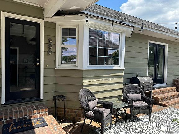 Charming and unique home on South Beech Avenue in Andrews! The front double doors open to a small foyer with brick floors. Beyond the foyer is the living room with exposed beams and a stunning antique brick fireplace. To the left of the fireplace is a dining area, and to the right is the kitchen. The kitchen has ceramic tile, a wine fridge, a wall oven, and a stainless steel refrigerator. Both the kitchen and dining room overlook the courtyard and the swimming pool. All bedrooms are accessed from a hall that can be closed off with double doors matching those in the entry. There are two bedrooms down the hall that share a hall bathroom. The hall bath has recently been updated with beadboard walls, LVT flooring, and a new shower insert with subway tile. The spacious primary suite is at the end of the hall. The primary bathroom has also recently been updated with a new shower, LVT flooring, and a modern vanity. Stairs at the end of the hall lead to a flex space, currently used as a 4th bedroom. A breezeway connects the home to a former garage that has now been outfitted for a man cave. Finally, at the rear of the property is a storage shed - ideal for yard equipment. This beautiful turn-key property on one of Andrews' best streets is set up for entertaining!