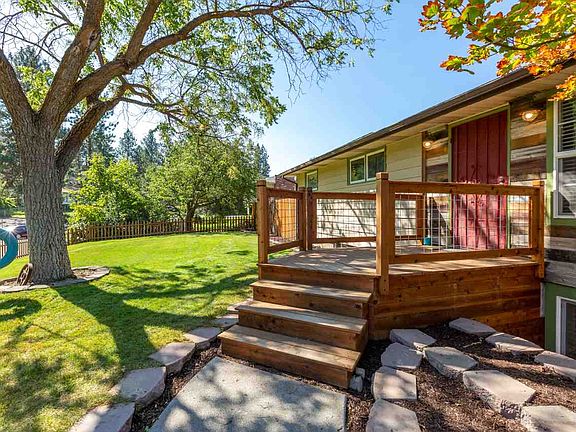Amazing location on this updated mid-century home, just a block away from the Dishman Hills Natural Area! This 5 bed/2 bath home features brick accents, updated bathrooms, stainless steel appliances, a huge master suite, fenced backyard, and a 2-car attached garage. The main floor includes a spacious kitchen with an informal eating area, formal living room with fireplace, three bedrooms, and a bathroom for the floor. Downstairs you will find an incredible master suite with a fireplace, walk-in closet, 5-piece bathroom, an additional bedroom, and a large laundry area. Outside is beautifully landscaped with mature trees, garden area, sprinkler system, and a dog run. Don't miss the bonus outdoor shed ready to be finished into the perfect she-shed or man-cave! Enjoy this move-in ready home ideally located with easy access to everything, while still maintaining the peaceful setting offered by the beautiful Dishman Hills.