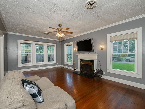 Beautiful 3-bedroom, 3-bath home offering exceptional space, comfort, privacy and possibilities. Nestled under towering shade trees, this property features two inviting living areas, a cozy wood-burning fireplace, original wood floors in much of the home, masterful hand-crafted woodwork throughout the home, a formal dining area and an office/multi-purpose room—This home is perfect for everyday living and entertaining alike. The multi-purpose room, with its own separate entrance, could potentially be used as a home office for your business. Be sure to check with the city to confirm any zoning or usage restrictions.