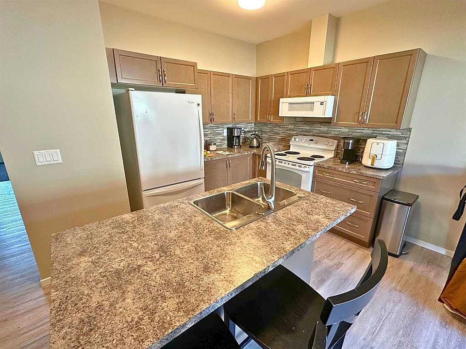 NO CONDO FEES! Welcome to this beautifully maintained 1,425 sq ft home in the heart of Penhold — just minutes from Red Deer. This bright and inviting 4-plex is designed for modern living, with an open-concept main floor that features large windows, durable laminate flooring, and a spacious living area filled with natural light. The well-appointed kitchen includes a central island and opens onto a private back deck through sliding patio doors — perfect for seamless indoor-outdoor living. A convenient 2-piece bathroom completes the main level. Upstairs, you'll find three generous bedrooms, including a primary suite with a walk-in closet and a 4-piece ensuite. An additional full bathroom and an upper-floor laundry area add comfort and functionality. Enjoy the convenience of a single attached garage and a fully fenced backyard — ideal for relaxing or entertaining. Recent upgrades include refreshed lighting, a new microwave, and freshly painted deck and fencing. Located in a vibrant community, Penhold offers amenities such as a recreation center with a fitness area, lounge, library, skate park, and splash park — making it a fantastic place to call home. This pristine property is move-in ready and waiting for you!