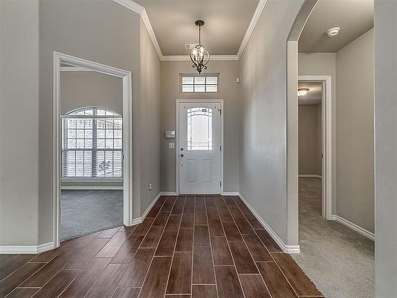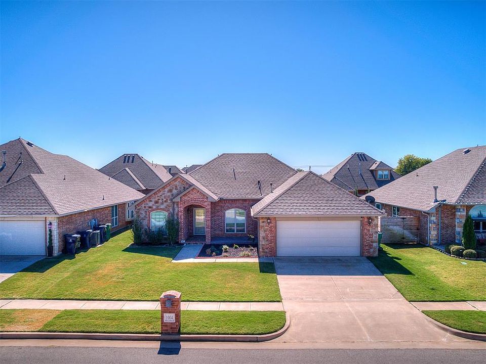 Single-level home in sought-after Palermo Place! This 3-bed, 2-bath layout includes a dedicated study, open-concept living, and a spacious kitchen with island, stainless appliances, and white cabinetry. The private primary suite features a double vanity and walk-in closet. Enjoy the fully fenced backyard with covered patio—perfect for relaxing or entertaining. Bonus features include a storm shelter in the garage, gas fireplace, and access to NEIGHBORHOOD POOL and greenbelt. Moore Schools. Move-in ready and packed with value!