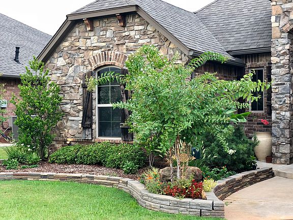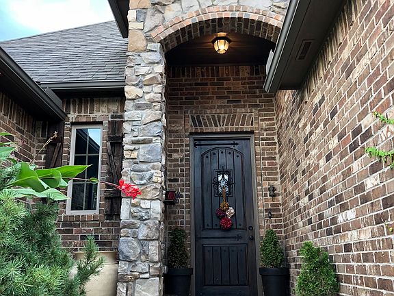 Welcome to a home perfect for the holidays! With tall vaulted ceilings ready for a Christmas Tree & countless customizations throughout, this is the home you've been looking for. Featuring custom builds such as a built in desk in the office and built in buffet and wine rack in the dining, the home also offers a luxury master retreat that showcases a walk in tiled shower, double vanities, jacuzzi tub, separate sit down vanity, and master closet suited for royalty. This one-owner home includes an amazing office with French doors opening into the living room & an electronics closet for all of your TV components. A storm shelter, covered patio, jack & jill bath, & outdoor living space are all provided, including a flat driveway perfect for playing basketball. Built-in storage throughout make this home extra special. Rock Creek is a kid-friendly neighborhood with a brand new playground & a community pool, & the waterfall at the entrance makes you feel welcome every time you come home.
