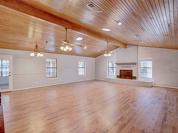This move-in ready Bridgeport home offers a clean presentation and is positioned for a smooth, quick closing. Just minutes from Lake Bridgeport and local schools, it sits on an oversized, tree-shaded lot with practical functionality inside and out. The open living and dining area features a cathedral-style wood ceiling, and each of the three bedrooms includes a private full bath—ideal for families, guests, or multigenerational living. Updates include interior paint, refreshed doors and trim, and a redesigned laundry area with a custom pet-wash station. A sunroom and separate office provide flexible space for work or hobbies. Outside, the covered outdoor kitchen pavilion overlooks the pool and a large backyard enclosed by a steel-and-wood privacy fence. Seller will complete the finish-out of the refrigerator area in the outdoor kitchen prior to closing and funding.