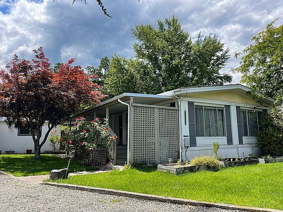 This wonderful two bedroom two bathroom manufactured home sits on a .2 acre lot at the south end of Talent. This property has amazing utility and potential. There is a Loop driveway for easy and safe entry and exit where you won't ever need to back into the street. There is a covered carport with 2 wide parking spaces as well as one uncovered space fit for an RV or trailer. Attached to the car port is a spacious utility room with endless potential. There is also a partially finished workshop with built in workbenches, and additional storage. This property has amazing landscaping including Japanese maple, roses, and established trees. The nice wrap-around yard is partially fenced and has great potential for dogs. The front yard has raised garden beds, flowering trees and a water feature.