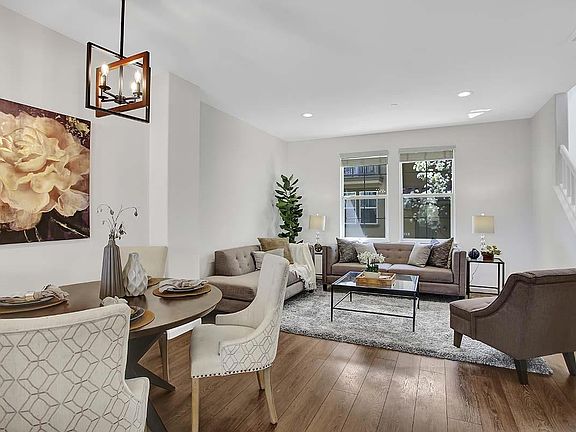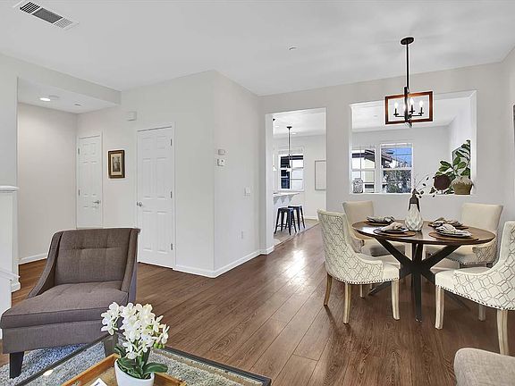 Beautifully-remodeled townhome in Terra Serena's gated community features bright open-concept living area w/ high ceilings, updated kitchen, & low HOA dues w/ wonderful amenities. Entertainers kitchen is complete w/ granite countertops, shaker-style cabinets w/ built-in desk, gorgeous tile flooring, & large island w/ counter seating that overlooks sun-filled family room. Adjacent living room & dining area features spacious dining area w/ large passthrough & beautiful hardwood floors. Huge master bedroom suite features walk-in closet & private balcony. Other features include laundry room on ground floor, recessed lighting throughout, closet organizers w/ lifetime warranty, new interior paint throughout, spacious 2-car garage, new carpeting, & central heating/AC. Gated Community w/ low HOA dues features swimming pool/spa w/ club house, playgrounds, & adjacent county park with tennis courts & walking trails. Conveniently located close to great schools, parks, shopping & freeways.