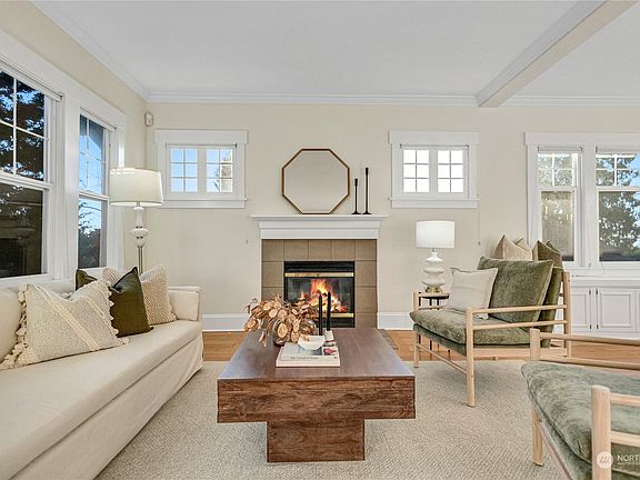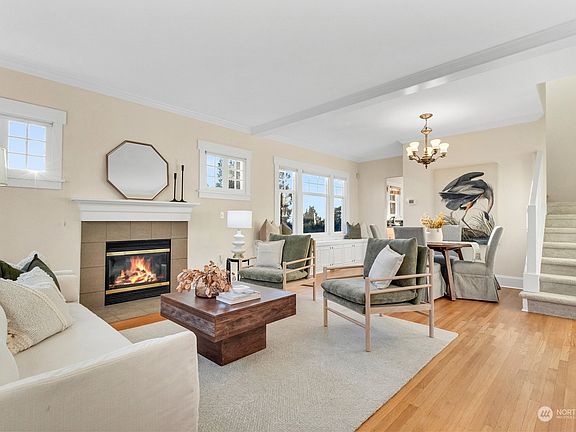 The perfect blend of modern updates and classic Craftsman charm welcomes you right from the front steps. This home showcases refinished hardwood floors, soaring ceilings, custom built-ins, and a cozy gas fireplace. Located on a quiet, low-traffic street, it offers breathtaking sunsets along with water and mountain views. The expansive kitchen, complete with gas cooking, and a breakfast nook, is a chef's delight. The spacious primary bedroom includes an en-suite bath, a large walk-in closet, a sitting area, and brand-new carpeting. A family-media room with fresh carpets and a half bath enhances the comfort of the home. Lush landscaping and a spacious deck with a view make this home truly enchanting.