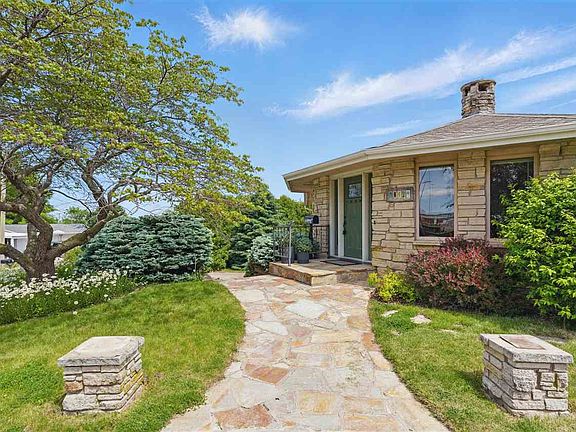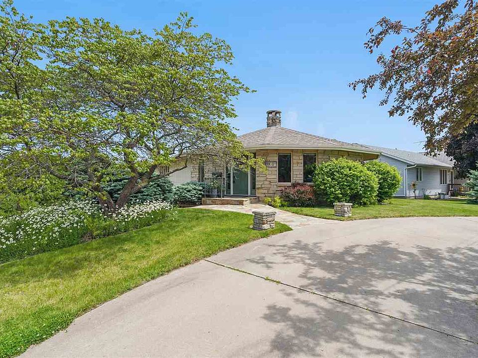 Step inside this unique home that offers a prime location within walking distance to the school. As you enter, you'll be greeted by the open living room that centers around a stunning large flagstone fireplace, creating a cozy and inviting focal point for gatherings and relaxation. The kitchen is a functional space, complete with appliances, plenty of cabinetry with crown molding, and under cabinet lighting. Off the kitchen, a laundry closet complete with washer/dryer and an exterior door that leads to the shaded outdoor space, a perfect spot for entertaining. The main level primary suite offers a walk-in closet and full bathroom featuring a stand-up corner shower and vanity. An additional guest bedroom on the main level and a full bathroom with a tub and vanity. The LL features BRAND NEW flooring and paint, a family room with a wet bar and refrigerator, providing a space for socializing. A third nonconforming bedroom with an attached half-bathroom. The attached garage provides convenient parking and ample space for a workbench and storage. Outside, the yard boasts gorgeous perennial plants and flowers and a circle drive. Across the street, enjoy the convenience of ball diamonds for summer nights of softball or baseball. This unique home offers a blend of comfort, functionality, and outdoor enjoyment. Newer roof.