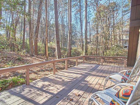 "A" is for adorable! This 1970's A-Frame on a private 0.51 acre lot has also been described by many as *magical*. You'll feel like you've been transported to a quiet mountain chalet with the large rock outcropping in the backyard and a babbling brook running beside the property. The mostly vintage and period-correct furnishings compliment the warm walnut-hued walls and ceilings. The cozy upstairs bedroom loft is 327.5 sqft with a desk overlooking the wooded back yard. Downstairs, you have an additional 410 sqft of living area with a large laundry/storage/workout space and newly renovated bathroom. The well stocked kitchen is very functional with new quartz countertops and a dishwasher. Two generously sized decks give you plenty of space to enjoy the outdoors. Talk about a mid-century tiny-home dream come true! With the abundance of serenity, you'll forget you're only 2 minutes to Southern Village/Weaver St. Market, 4 minutes to UNC Hospital, and 5 minutes to Franklin St/UNC's campus. This rental comes fully furnished with all utilities - (Spectrum high-speed internet, electric, water, trash/recycle) - included in the monthly rent. All you need to bring is your suitcase full of clothes. Rental terms are flexible, but the Chapel Hill Short Term Rental Ordinance states home cannot be rented for less than a 30 day term. 3 month minimum with longer periods preferred. Thank you for viewing!