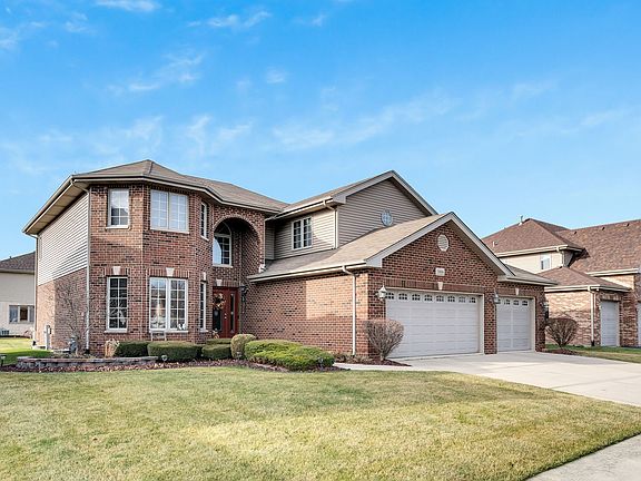 Your new home in the highly sought after Newbury Estates awaits you! This traditional two story has been meticulously cared for and is ready for the new owner to enjoy. Upon entering, you are greeted with a welcoming foyer and will notice the home has an open and inviting layout as well as Brazilian cherry hardwood floors throughout the majority of the main floor. Directly to the left is the formal sitting room with bay window. Continuing on is the living room complete with corner fireplace and ambient lighting. This room flows to the eat-in area next to the kitchen fit for a chef featuring cherry cabinetry, granite countertops, oversized island with bar seating, buit-in pantry cabinetry, and a beautiful stainless appliance package to remain with the home. If you are still looking for more seating for holiday gatherings, look no further than the dining room adjacent to the kitchen complete with French doors. Completing the main level is the half bathroom, finished laundry room, and access to the oversized three car garage with freshly epoxied floors! The second level greets you with a primary suite fit for a King or Queen! You will notice a second fireplace, attached oversized en suite with large corner bathtub, double vanity, tiled shower, and skylight for additional natural light. The primary closet is the size of a bedroom, and can store all of your personal items and then some. Continuing through the primary closet is a bonus space large enough for a home theater, home gym, second primary closet, or anything else you dream of. Continuing down the hall are three additional secondary bedrooms and a secondary bath with skylight and tiled shower. The unfinished full basement lends plenty of room for you to finish as you so desire, but you will likely find the nearly 3,000 currently finished square feet is more than adequate. In the backyard is a stunning decorative brick patio with enough room for any outdoor gathering. Additional notable upgrades in this home include: dual zoned heating and cooling, outdoor irrigation system, security system, decorative ceilings in the formal sitting room and formal dining space, ambient lighting above each of the two fireplaces, and more storage and natural light than you expect. This home is second to none! Don't miss your chance to make this house your home for the New Year!