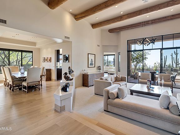 This impeccable, reimagined residence defines luxury living with its exquisite blend of timeless, sophisticated style. Sited within the coveted Desert Highlands Club Community exclusive section known as ''The Heights''. Desert Highlands, Scottsdale's premier lifestyle community where full club amenities are immediately available upon Close of Escrow. From the front door your eyes are immediately drawn towards the great room's sliding glass wall that showcases awe-inspiring down valley, mountain, & city light views. This single level home offers a well-designed 3,067 sq ft floor plan, with two spacious bedroom ensuites, a dedicated office, welcoming great room, formal dining room, and a Chef's kitchen that opens to the comfortable family room. Enjoy seamless indoor-outdoor living by sliding the glass doors to the multiple south-facing covered patios. From this vantage point, you overlook the heated pool and spa while taking in the breathtaking down Valley Views. To the West is Pinnacle Peak - the quintessential Arizona backdrop! The backyard is a true oasis, featuring multiple covered patios, heated pool, spa, and a convenient built-in grilling station. Positioned on a half-acre corner lot, this location guarantees backyard privacy.