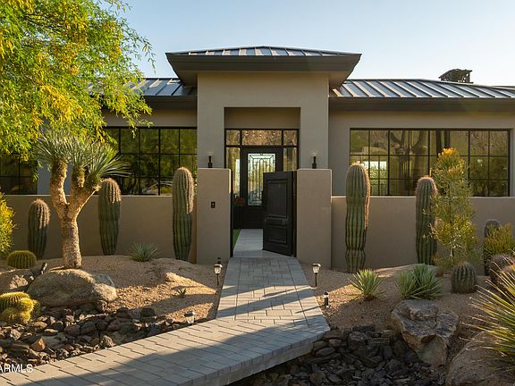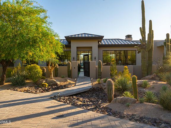 Nestled on 1.435 acres in the prestigious guard-gated community of Desert Highlands, this rare architectural masterpiece was envisioned by its owner and brought to life by renowned G&T Custom Homes. Blending modern sophistication with the natural beauty of the Sonoran landscape, walls of glass frame dramatic views of Pinnacle Peak, while sleek interiors, open living spaces, and refined finishes create a seamless balance of elegance and comfort. Designed for both intimate living and grand entertaining, the 4,829 sq ft residence offers three ensuite bedrooms in the main house, 3.5 baths, and a private casita with one bedroom, one bath, and a kitchenette. With effortless indoor-outdoor flow, the home is both an entertainer's dream and a private sanctuary, thoughtfully crafted to embrace the desert lifestyle.