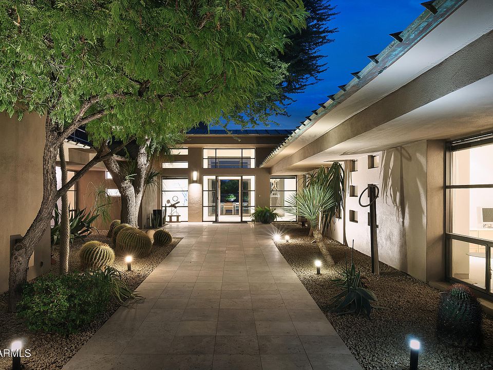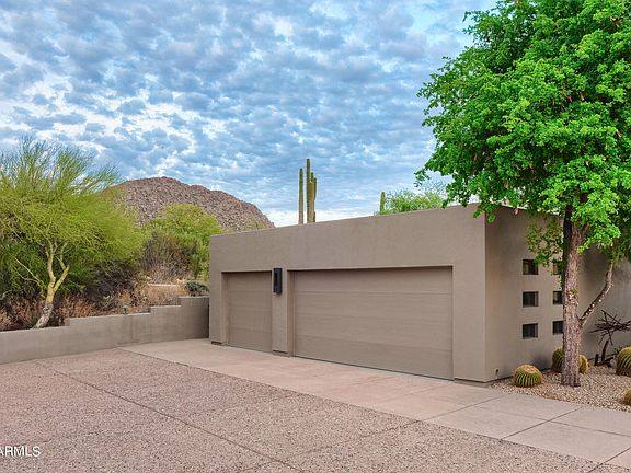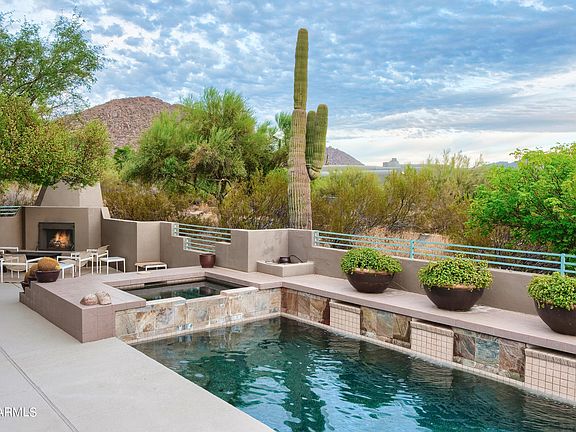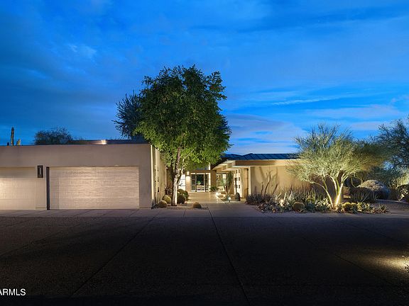 IMMEDIATE GOLF MEMBERSHIP AT CLOSING. One of a kind contemporary, exquisitely designed by Frank Lloyd Wright style protege Howard Madole. Surrounded by breathtaking mountain views and the beautiful Sonoran Desert. Large expanses of glass allow for sunlit living. Great room bordered by walls of glass, formal dining room, convenient kitchen with adjacent breakfast room and private patio to enjoy alfresco dining. Comfortable primary suite + 2 guest suites with ensuite bathrooms. Large upstairs office/den with cozy fireplace with access to a view deck. Gorgeous outdoor living with meandering walkways encompassing the home, private patios and magnificent resort-like backyard with heated pool and spa, fireplace and BBQ. Designated a top 'Platinum Club of America'' golf club, Desert Highlands amenities include a Jack Nicklaus championship golf course, 18-hole putting course, award winning clubhouse featuring ''Jacks'' gastropub, state of the art fitness center, Highlands Racquet Club featuring grass, clay and pickleball courts, and more. A $150,000 membership fee is due from buyer at close of escrow.